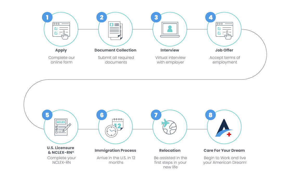 Visa Solutions Healthcare can help you achieve your American Dream by placing you in a rewarding nursing career in the United States. When you join our program, you’ll apply for a position with one of the leading U.S. healthcare facilities we represent. Once you receive a job offer, Visa Solutions Healthcare will assist you with the credentialing, immigration, and relocation process required to start your new job in the U.S.